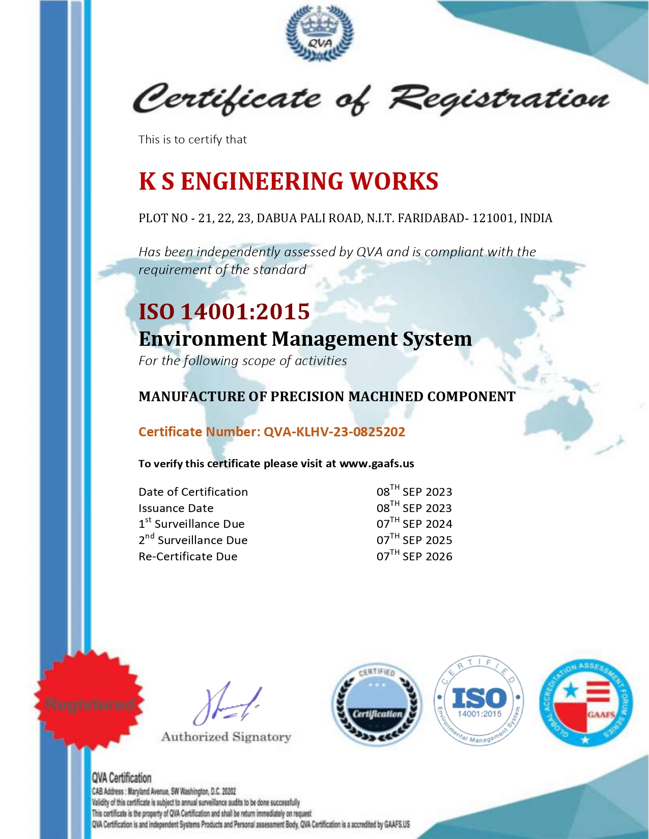 We are an ISO 9001:2015 certified company with extensive experience in the standards for proper machining techniques. Our staff is experienced in all areas of quality control and understand mathematical integration, gauge reading, print identifying and tolerances, CNC control and programming and on site safety.