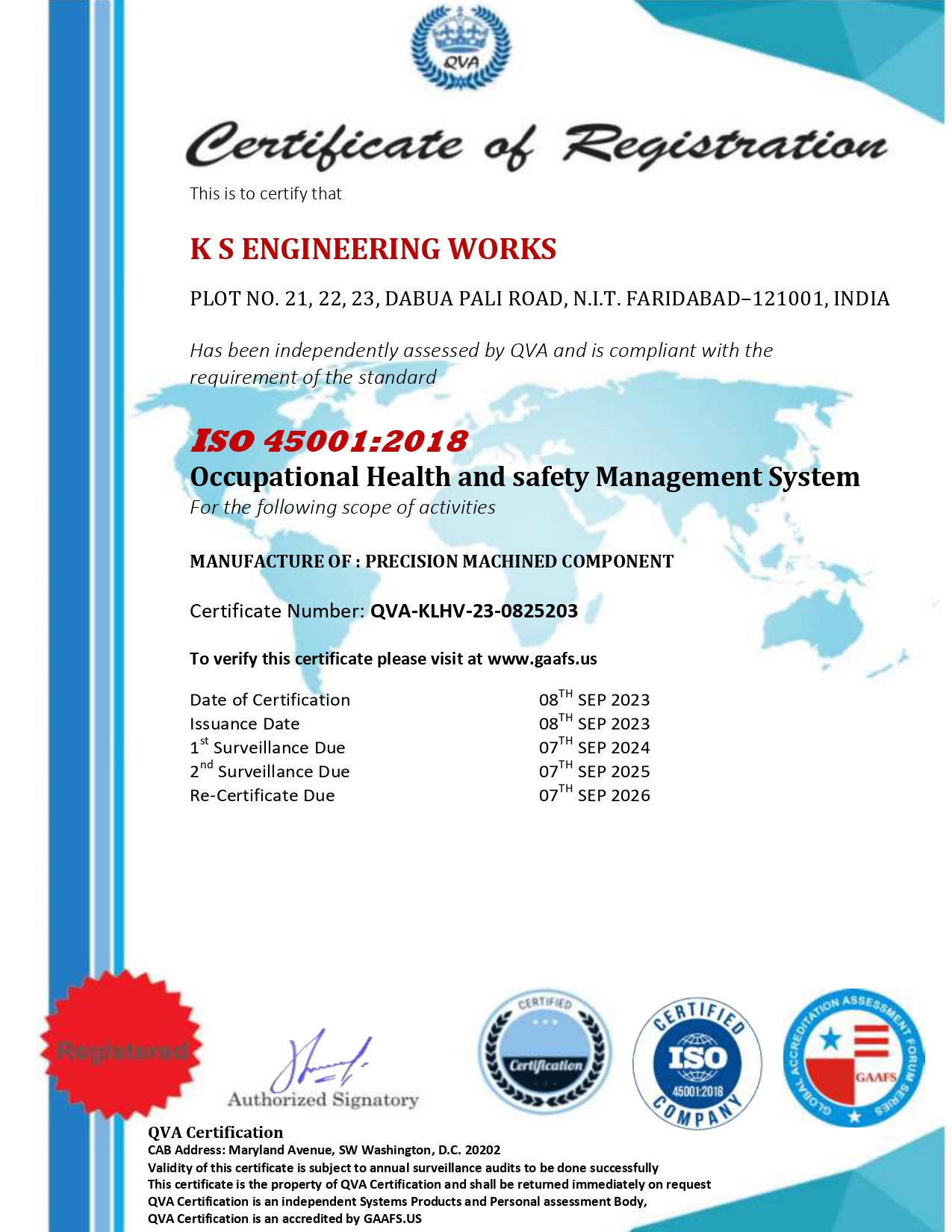 We are an ISO 9001:2015 certified company with extensive experience in the standards for proper machining techniques. Our staff is experienced in all areas of quality control and understand mathematical integration, gauge reading, print identifying and tolerances, CNC control and programming and on site safety.